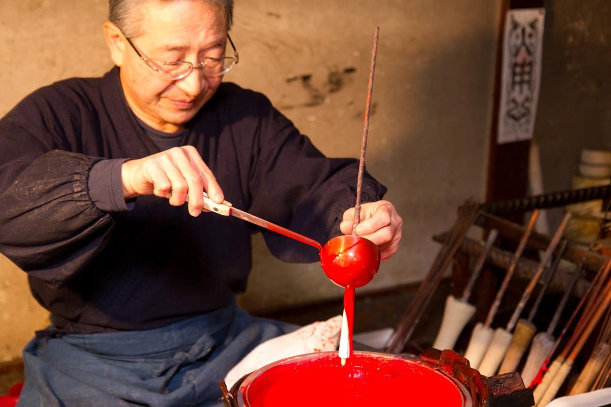 和ろうそくは天然の素材だけを使って一本一本丁寧に作られる。植物性の蝋(ろう)を使っているため、西洋ろうそくに比べ煤(すす)も出にくく、芯が溶けた蝋を吸い上げながら燃えるため蝋が垂れにくいのが特徴だ。