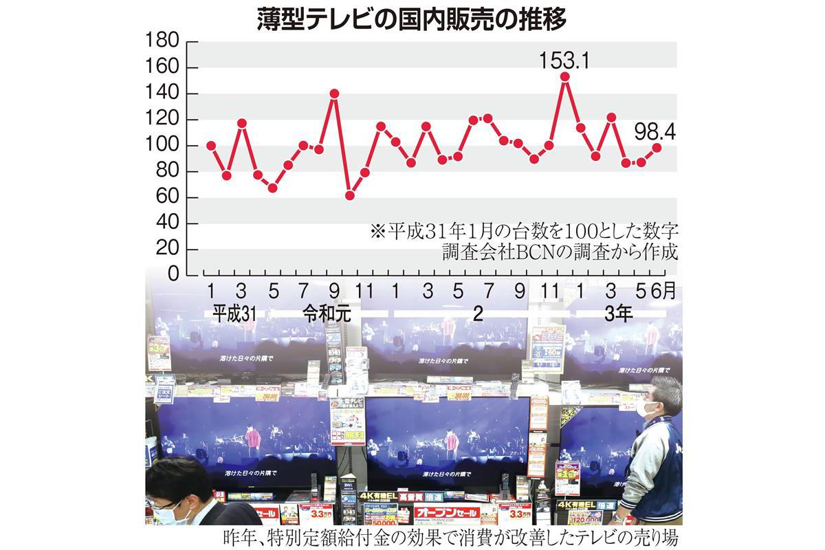 上新電機の広報担当者はこう話す。昨年は国民1人当たり10万円支給された特別定額給付金により薄型テレビの売り上げが急伸。コロナ前を上回るペースで推移したという。