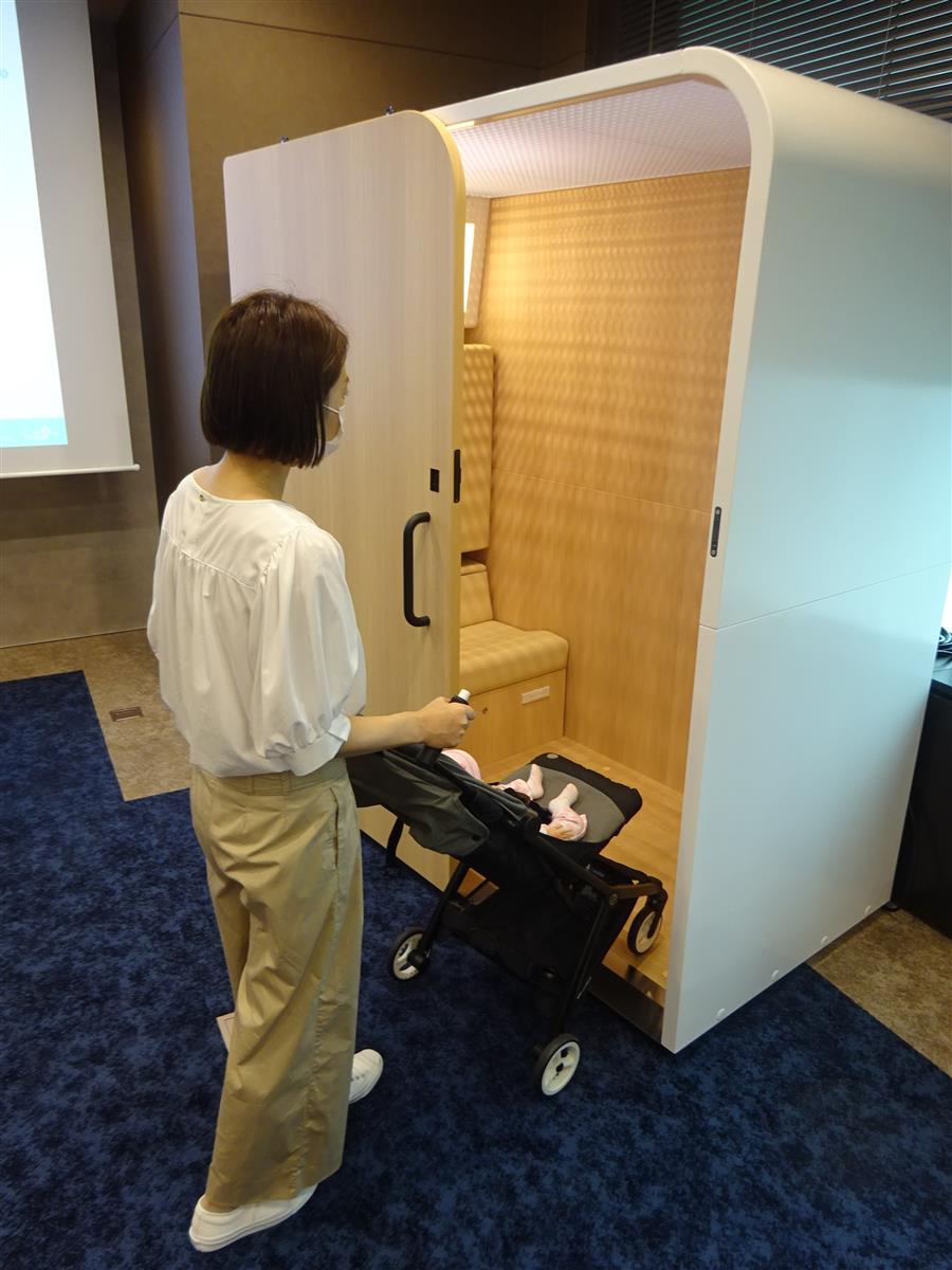 子育て支援ITベンチャーのTrim(トリム、横浜市中区)は、授乳やおむつ替えのための設置型ベビーケアルームの新製品「mamaro(ママロ)2」を今秋発売する。従来品よりも間口を1.5倍に広げ、ベビーカーが直接室内に入れるようにした。室内に置かれたソファは背もたれを倒すことでベビーベッドとして使える。子供を寝かせると、自動で体重が計測される。専用のアプリと連携させて、成長が記録できるようにする。レンタルと販売の両方で展開する予定。価格は未定。300台の受注を見込む。従来のママロはこれまで商業施設などに約280台の設置実績があるという。