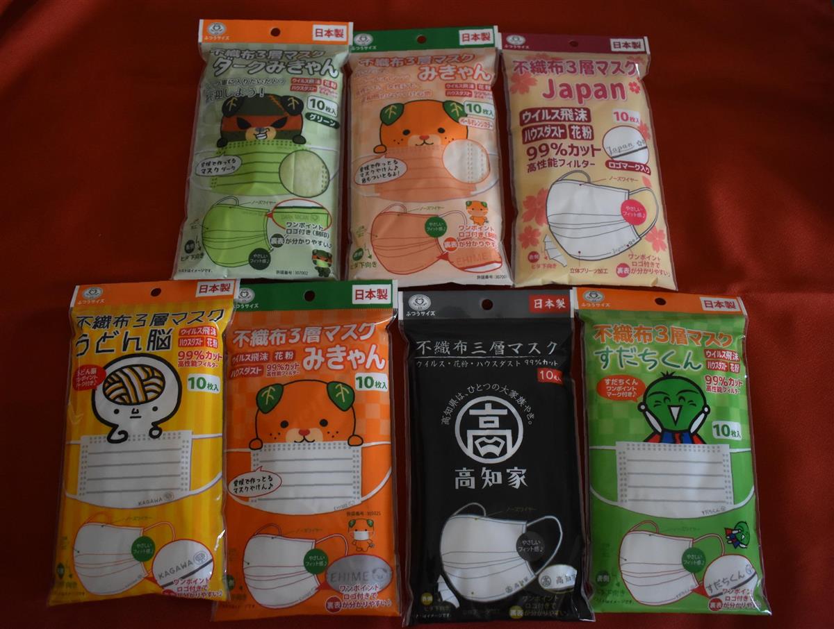 四国のご当地マスクは地元のホームセンター、スーパーに置いている。インターネットサイト、楽天市場でも販売している。(村上栄一)