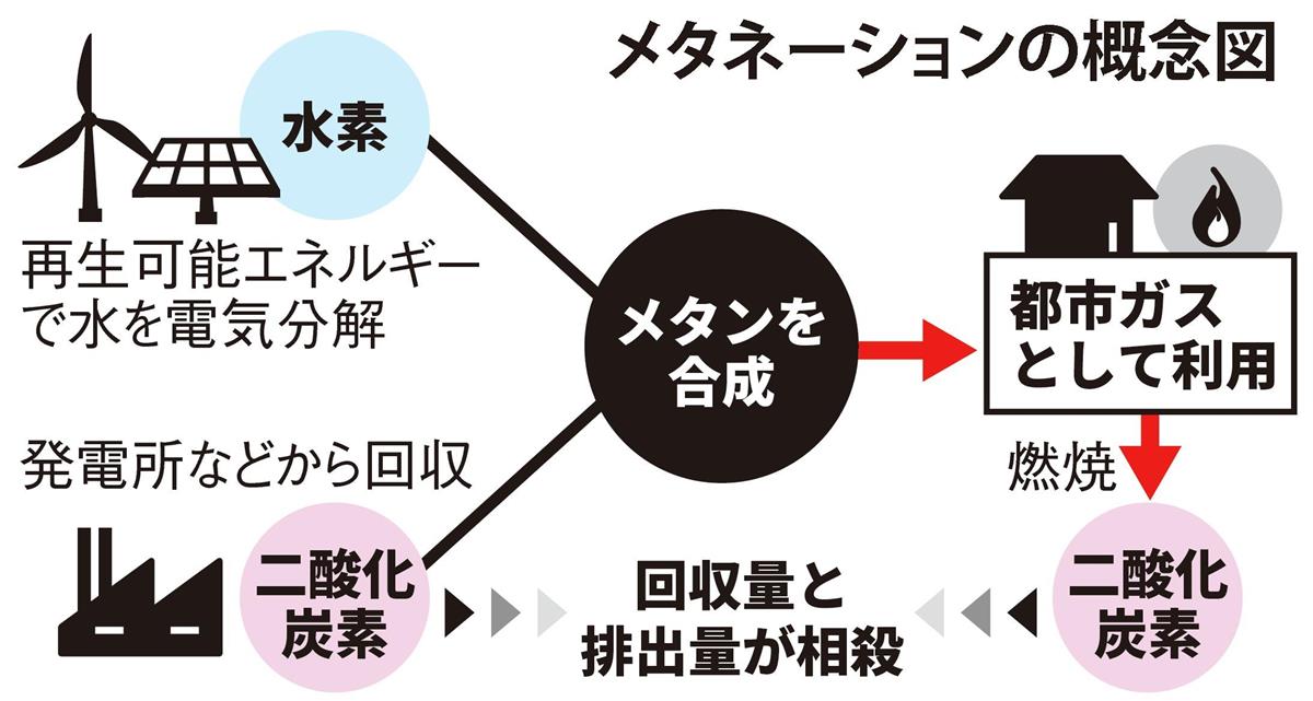 東ガスでは2030(令和12)年に年間ガス販売量の1%を合成メタンに置き換える計画。都市ガス事業者では大阪ガスも開発を進めており、業界として50年までに90%を合成メタンとする目標もある。