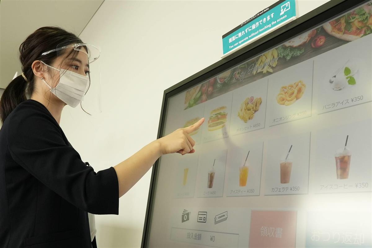 この日、堺市内で報道関係者を対象に開いた内覧会では、新型コロナ対策としてニーズが高まる非接触をテーマにした商品を披露した。「静電ホバータッチディスプレイ」は、画面から約5㌢離れた指を検知して操作できる非接触型のタッチディスプレー。画面の表面にかける電流を増やすことで離れた位置の指も検知しやすくなり、非接触での操作を可能にした。サイズは15インチから55インチまで対応可能で、来年春の商品化を目指す。