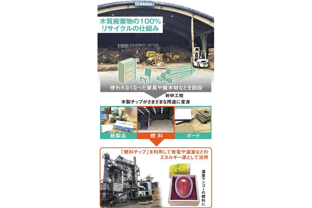 建造物や家具、日用品など古くから日本人の生活に深く関わってきた木材。多くの木材がさまざまな用途で使われているが、その陰では大量の「木質廃棄物」が発生している。木材のリサイクルに取り組む滋賀県米原市の「ヤマムログループ」は、廃木材からバイオマス発電の燃料や紙製品などを製造。木材のリサイクル率100%を達成した。「一片の木材も無駄にしない」との理念のもと、廃木材を“変身”させている。
