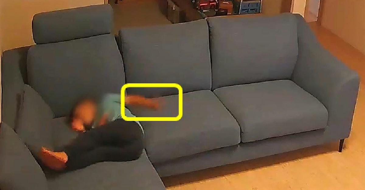 帰宅後、手洗い前にソファーに触る様子