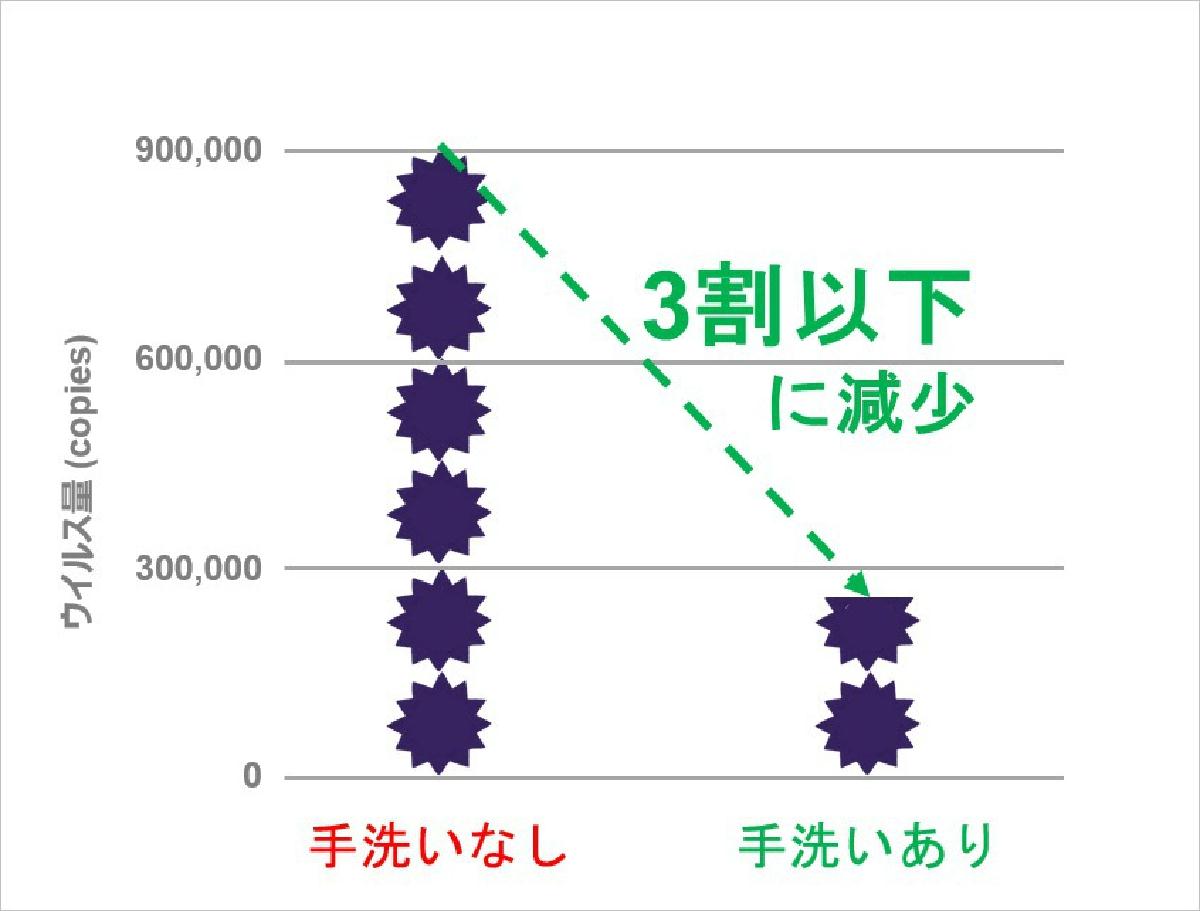 2. 帰宅後の手洗いが遅くなると家庭内にウイルスが拡散!直後の手洗いでウイルス付着量が3割以下に