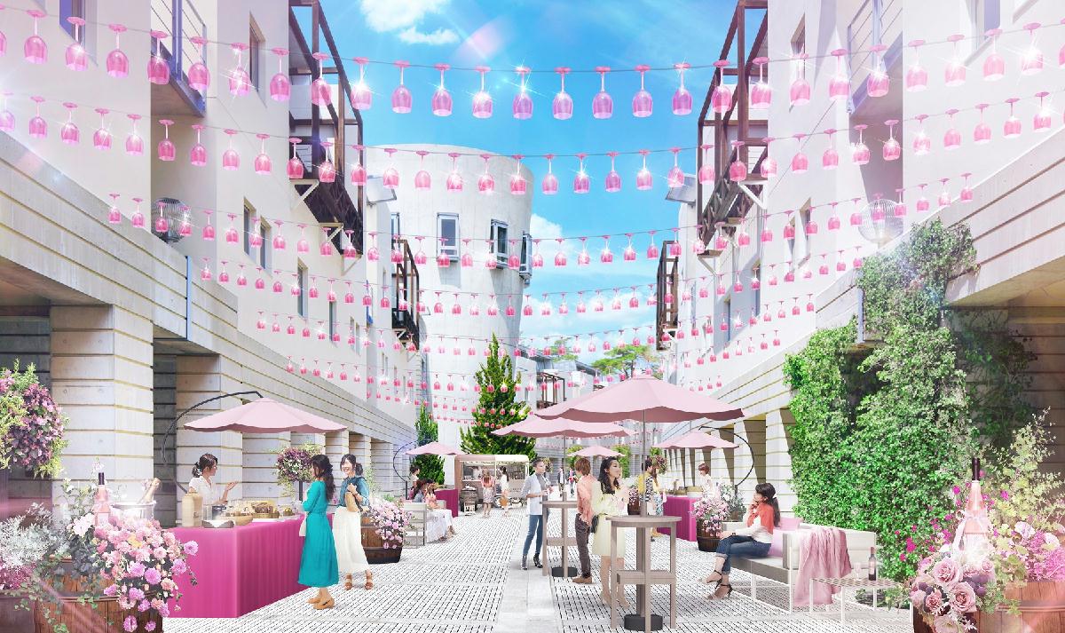 自然豊かな八ヶ岳エリアのリゾートホテル「星野リゾート リゾナーレ八ヶ岳」では、2022年3月19日~4月24日まで、メインストリート「ピーマン通り」で、ロゼ色に彩られた街並みでロゼワインを楽しむイベント「八ヶ岳ロゼタウン」を開催します。ピーマン通りはロゼワインをイメージしたロゼ色の装飾で彩ります。ピーマン通りのキッチンカーでは、10種類のロゼワインを用意。香りや味を楽しめるように、それぞれロゼワインに合う形状のワイングラスに注いで提供します。また、ロゼワインと相性のよいスイーツも楽しめます。ワインリゾートが春におすすめするワインの楽しみ方を、存分に堪能できるイベントです。