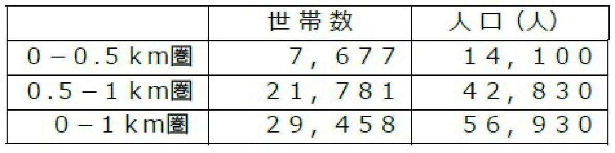 ・店舗から1km圏内は単身世帯比率が50.9%、2人世帯比率は22.5%と全体の7割が少人数世帯です。