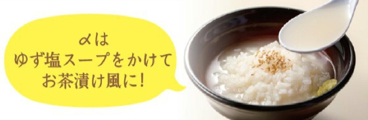 麺を食べ終えたら、「〆のご飯」を追加して、残りスープでお手軽ゆず茶漬けの出来上がり。