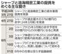 記者会見する鴻海精密工業の戴正呉副会長(中央)=30日、堺市堺区