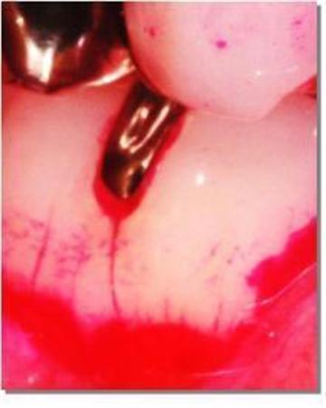 治療した虫歯の充填(じゅうてん)物と歯の境目も汚れが残りやすい。金属充填物をはめた様子