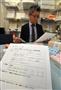 多岐にわたるグループの事業を横断して応募できるジョブチャレンジ制度の社内ネットの応募告知画面と働く社員ら=大阪市中央区の帝人大阪本社(南雲都撮影)