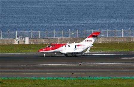 羽田空港に着陸したホンダのビジネスジェット「ホンダジェット」=23日、東京・羽田空港(早坂洋祐撮影)