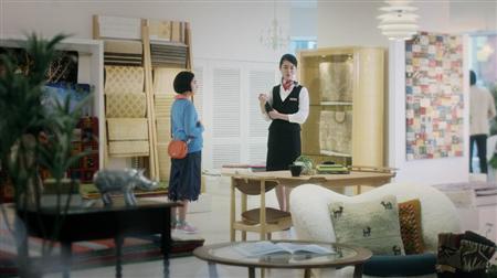 いいインテリアについて語る大塚家具の女性店員(右)と聞き入る平祐奈さん(同社提供)