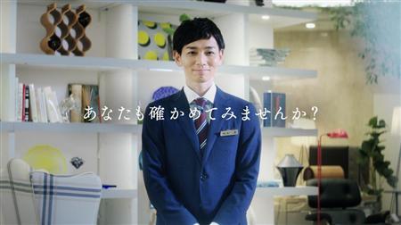 大塚家具の男性スタッフ編のワンシーン。名刺や店内が替わったことをアピールする(同社提供)