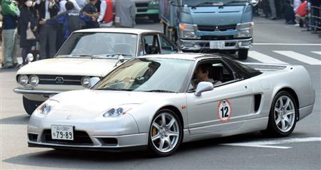 東京モータショー60周年記念パレードが行われた。ホンダのNSXーS(手前)=24日午前、東京都千代田区(鴨川一也撮影)