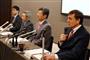 記者会見した「放送法遵守を求める視聴者の会」の代表よびかけ人、すぎやまこういちさん(中央)ら=26日午後、東京都千代田区(三品貴志撮影)