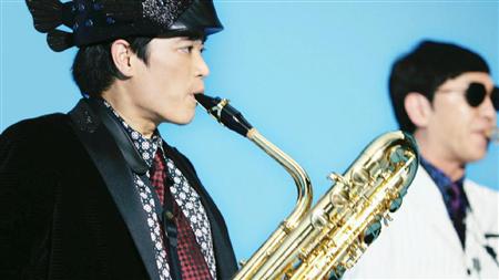 白衣を脱ぎ捨て、おなじみのハコフグ帽子も含め全身黒の洋服をまとい、サックスを華麗に演奏する「GYO」こと、さかなクン