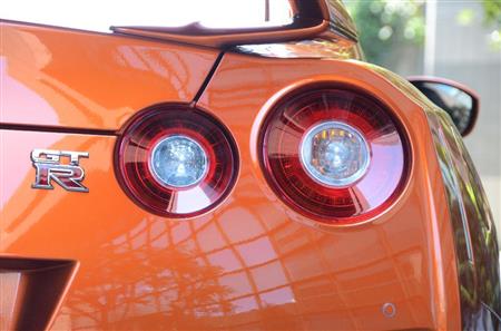 日産自動車のスポーツ車「NISSANGT-R」のテールランプ=東京都港区(伴龍二撮影)