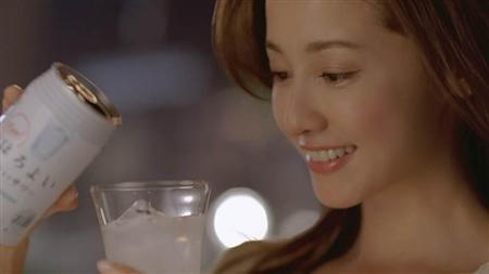 自宅にいるシチュエーションで涼しげに「ほろよい」をグラスに注ぐ沢尻エリカさん(サントリースピリッツ提供)