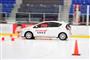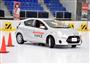 「ブリザックVRX2」を披露する(右から)ブリヂストンの井出慶太氏、女優の綾瀬はるかさん、ブリヂストンの上田達也氏