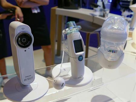 uグローとの連携機器。左からベビーモニター、体温計、今後発売予定の哺乳瓶。計量機能が搭載されており、赤ちゃんが何時にどれくらいの量のミルクを飲んだかを管理できる