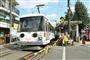招き猫のイラストがあしらわれた世田谷線の車両=25日、東京都世田谷区(魚眼レンズ使用)