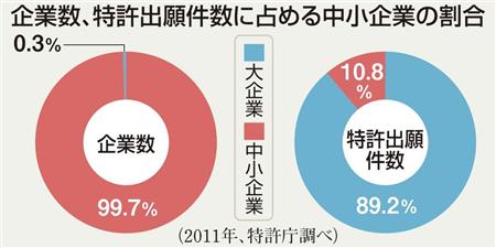 企業数、特許出願件数に占める中小企業の割合【拡大】