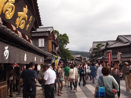 まだ夏日のような日差しが残る9月下旬。平日にもかかわらず、伊勢神宮内宮の門前町にある「おかげ横丁」は、ツアーの団体客らでごった返していた。中高年が中心だが、若いカップルも多い。まるで大都市の繁華街を思わせるにぎわいだ。