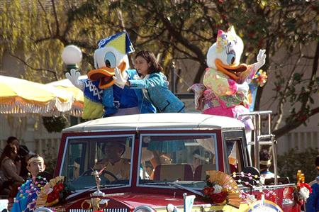 東京ディズニーランドでは正月限定のパレードが行われ、ミッキー、ミニーが陽気で芸達者なウマのディズニーキャラクター「ホーレス・ホースカラー」とフロートの上から「ハッピーニューイヤー」。