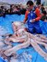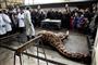 水揚げした漁師、山口仁司さん(53)は「40年近く漁に出ているが初めて見て驚いた。大きくて怖かった」と話していた。