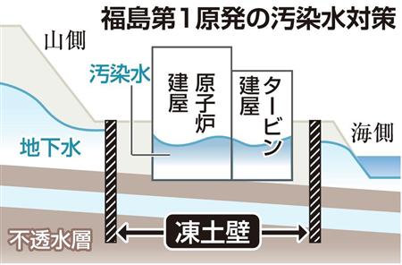 凍土壁は、「汚染水の抜本的な抑制策」(経済産業省)として、政府が昨年9月に国費約320億円の投入を決定。政府や東電は実効性を確かめるための実験に着手した上で、今年3月、規制委に凍土壁設置の申請書を提出した。