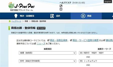 「J-PlatPat」の検索入力画面。新タイプの商標の検索機能搭載が予定されている【拡大】