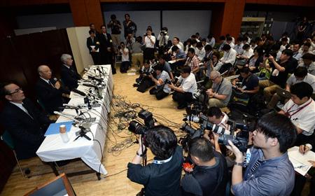 朝日新聞は11日、東京都中央区の本社で会見し、東京電力福島第1原発所長として事故対応にあたった吉田昌郎氏=昨年7月死去=が政府事故調査・検証委員会の聞き取りに答えた「聴取結果書」(吉田調書)に関し、「所長命令に違反、原発撤退」と報じた記事の誤りを認め、謝罪した。