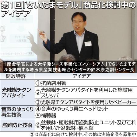 SAITECの鈴木副センター長は「さいたまモデルは一般からアイデアをネットで募集するのが肝。『こういうものがほしい』というアイデアが多く寄せられる。ニーズがあるものなので短期間で商品化につながりやすい」と指摘する。