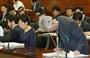 流出した個人情報が約101万人分と判明し、記者会見で謝罪する日本年金機構の理事ら=22日午後、厚労省【拡大】