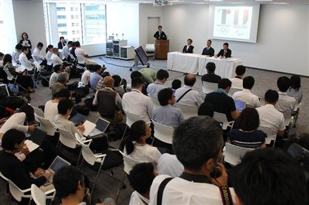 《2020年東京五輪の公式エンブレムをデザインしたアートディレクター、佐野研二郎さんの会見は終盤に入った》