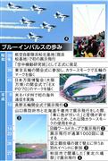 ブルーインパルスは昭和35年、浜松北基地(現浜松基地)第1航空団第2飛行隊内に「空中機動研究班」として誕生した。東京五輪のほか、大阪万博の開会式では「EXPO’70」の文字を大空に描くなど、F86引退までの21年間に545回の展示飛行を行った。