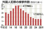 警察庁によると、国内の外国人犯罪の検挙件数は、平成26年が1万5215件と前年(1万5419件)に比べて微減。ピークだった17年(4万7865件)に比べて3分の1まで減少している。ただ、平成初頭の数年は6千件前後で推移しており、警察庁は「外国人犯罪は引き続き高い水準にある」と分析している。