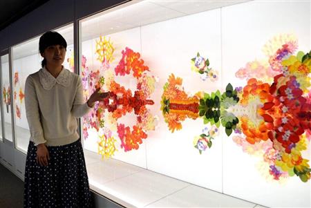 14号車は石川直樹氏の写真作品が並び、15号車は荒神明香氏の立体アート。16号車では米国のブライアン・アルフレッド氏の映像作品を車窓を眺めるように楽しめる。