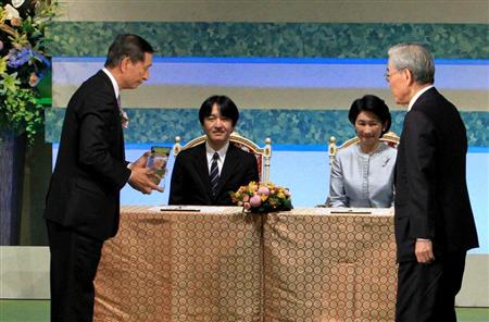 産業の発展と地球環境との共生を目指し、温暖化の防止や環境保全活動に取り組む企業や団体を表彰する第25回「地球環境大賞」(主催・フジサンケイグループ)の授賞式が18日午後、秋篠宮ご夫妻をお迎えして、東京・元赤坂の明治記念館で開かれ、各賞受賞者に表彰状とトロフィーが手渡された。