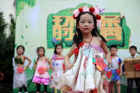 中国では今月1日が子供の日である「児童節」。この日を前に各地で子供たちが主役となった行事が行われ、安徽省合肥市ではこのほど、子供たちによる「環境保護ファッションショー」が行われた。自宅にある余りものの布などできれいに着飾り、“ランウェー”を歩くモデルたちの姿は得意げだった。(中国新聞社)