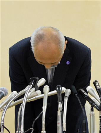 政治資金問題について会見し、頭を下げる舛添要一都知事=6日午後、東京都新宿区(山崎冬紘撮影)【拡大】