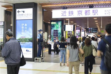 改札付近で警戒に当たる京都府警鉄道警察隊の隊員。プロの目で盗撮犯の不審な動きをキャッチする=6月30日午前、京都市下京区の近鉄京都駅【拡大】