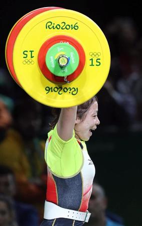 女子48キロ級スナッチの3回目で81キロに成功した三宅宏実=リオデジャネイロ(共同)【拡大】