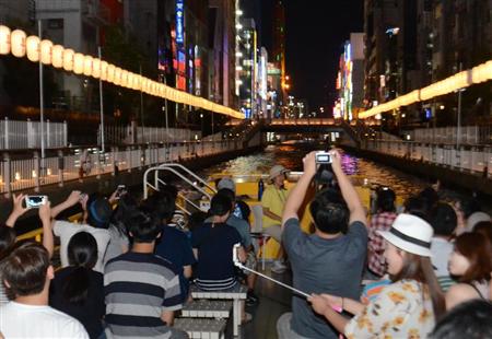 8月18日午後7時すぎ、大阪・ミナミの道頓堀川を航行するクルーズ船上で、ガイドの土井祐香さん(21)がマイクで話すと外国人客からどっと笑いが起きる。約70人の乗客に「どこから来ましたか?」と尋ねたところ、約40人が韓国で、他に中国や台湾などが挙がった。「日本人だ」と答えたのは2人だけだったのだ。
