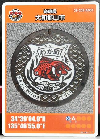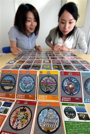 カードは、縦約9センチ、幅約6・5センチ。表には各地のマンホールのふたの写真と設置場所の緯度・経度が記載され、裏面にはデザインの由来が紹介されている。