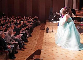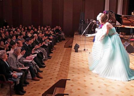 コンサートは漫画家で歌手としても活躍するさかもと未明さんら女性企業家が中心になって開催。聴衆はさかもとさんら歌い手による歌唱や、チェロの演奏などに聞き入っていた。