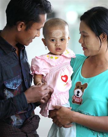「娘の命を救ってもらい、感謝の気持ちでいっぱいです」。動脈管開存症と肺高血圧を患いカテーテル治療を受けた女児、ピョー・ピョー・ルインちゃん(1)の母、ピョー・ウェイ・ウーさん(25)はこう話すと、「自分の命よりも大切」なピョーちゃんを抱きしめた。