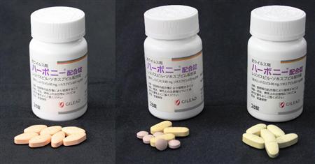 C型肝炎治療薬ハーボニー(左)と偽薬(中、右)【拡大】