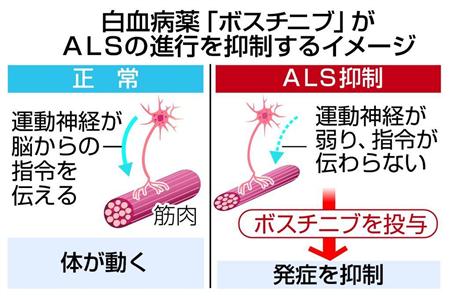 「念願の治療薬の開発に一歩近づいた」。人工多能性幹細胞(iPS細胞)を使った研究で「筋萎縮性側索硬化症(ALS)」の治療薬につながる有力な候補物質を見つけたと京都大iPS細胞研究所などのチームが発表した24日、実用化までには10年程度の期間を要する見込みだが、関係者に期待の声が広がった。